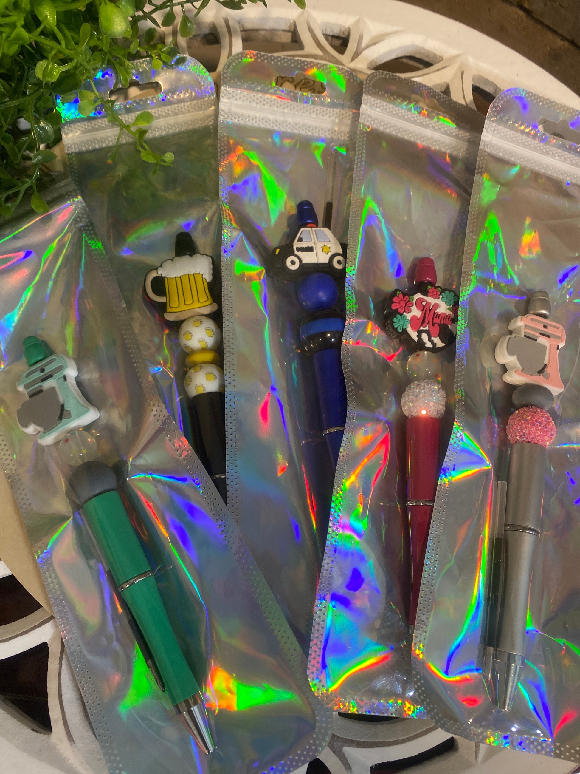 Beaded pens, comes with either blue or black ink.